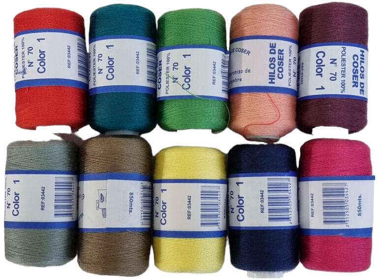 100% poliészter cérna vegyes színekben, gépi és kézi varráshoz egyaránt alkalmas. Kiszerelés: 5 darab/csomag. A képen látható színekből van összeállítva. A színek véletlenszerűen választottak.
